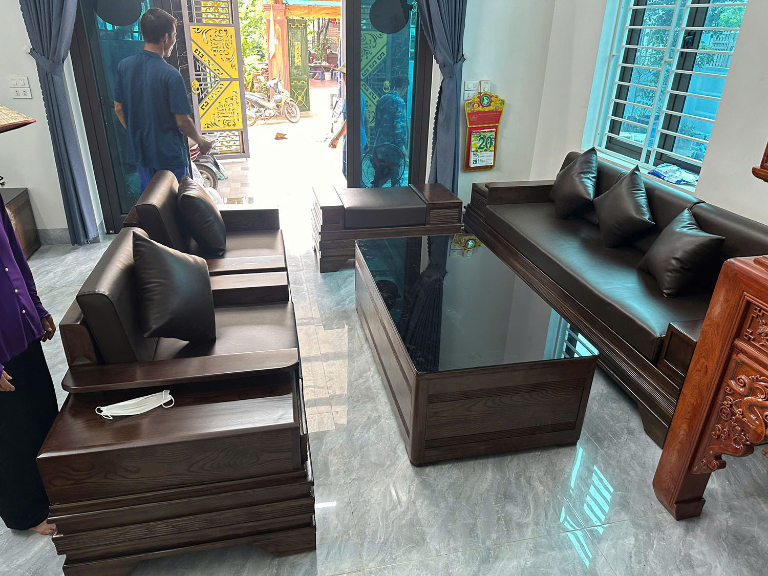 Bộ bàn ghế sofa gỗ chân quỳ 2 văng đối cao cấp hàng loại 1