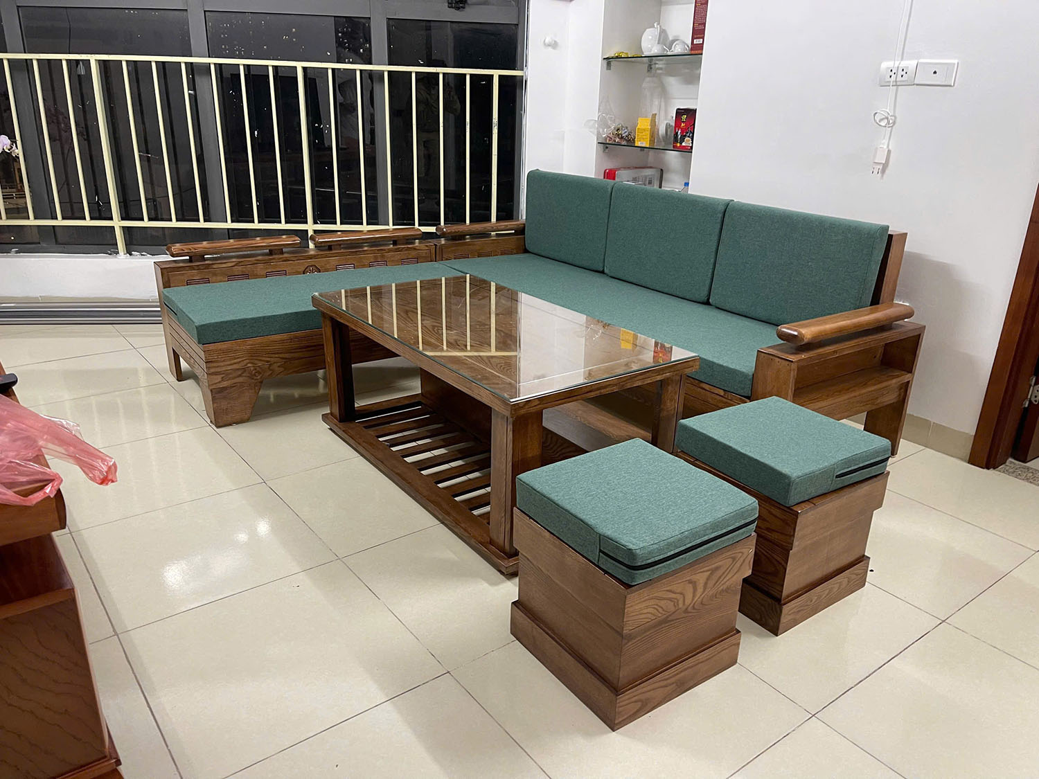 Bộ bàn ghế sofa góc chữ L chân thuyền Gỗ sồi nga