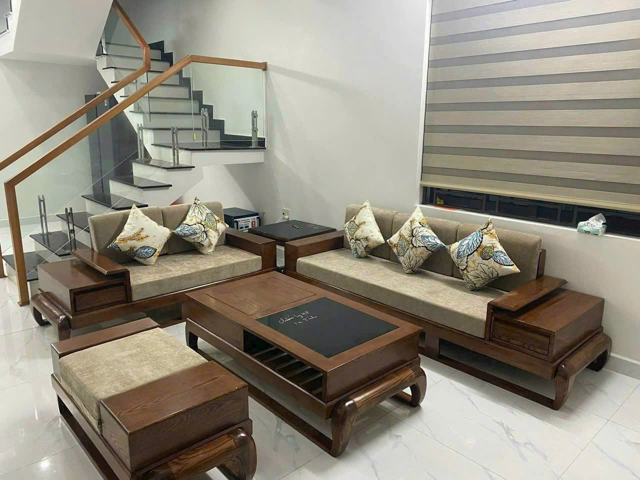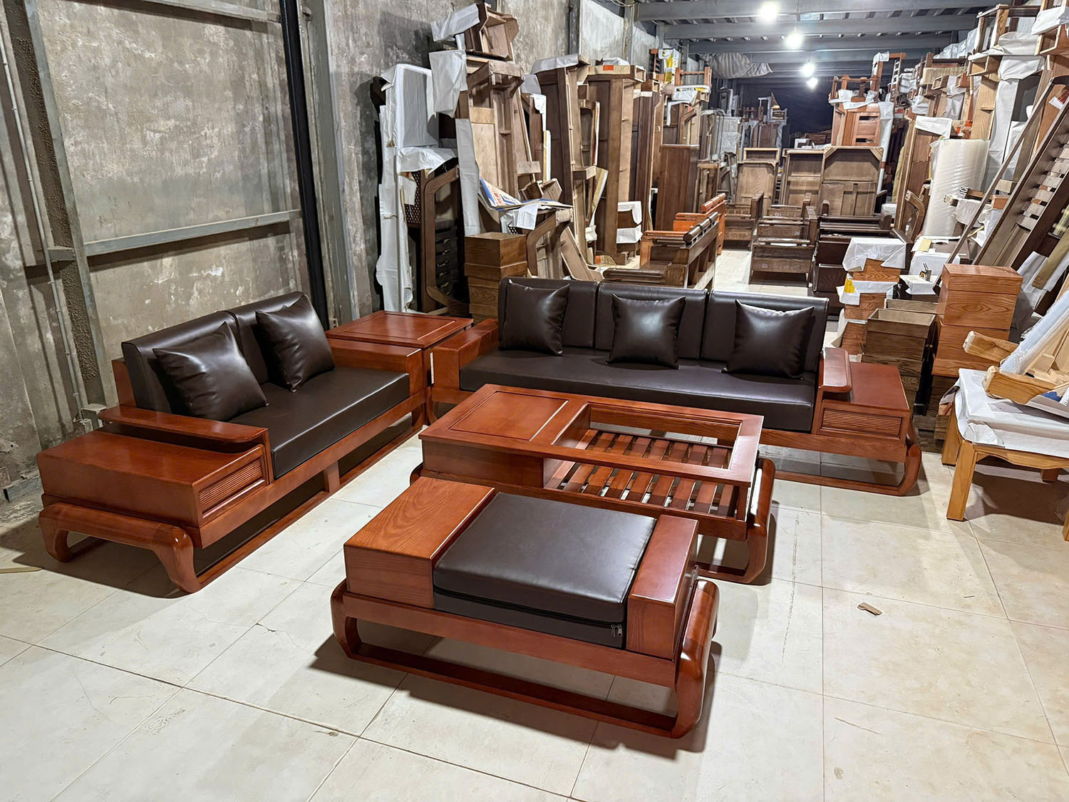 Bộ sofa được chế tác hoàn toàn từ gỗ sồi Nga tự nhiên đã qua xử lý kỹ lưỡng, chống cong vênh và mối mọt.