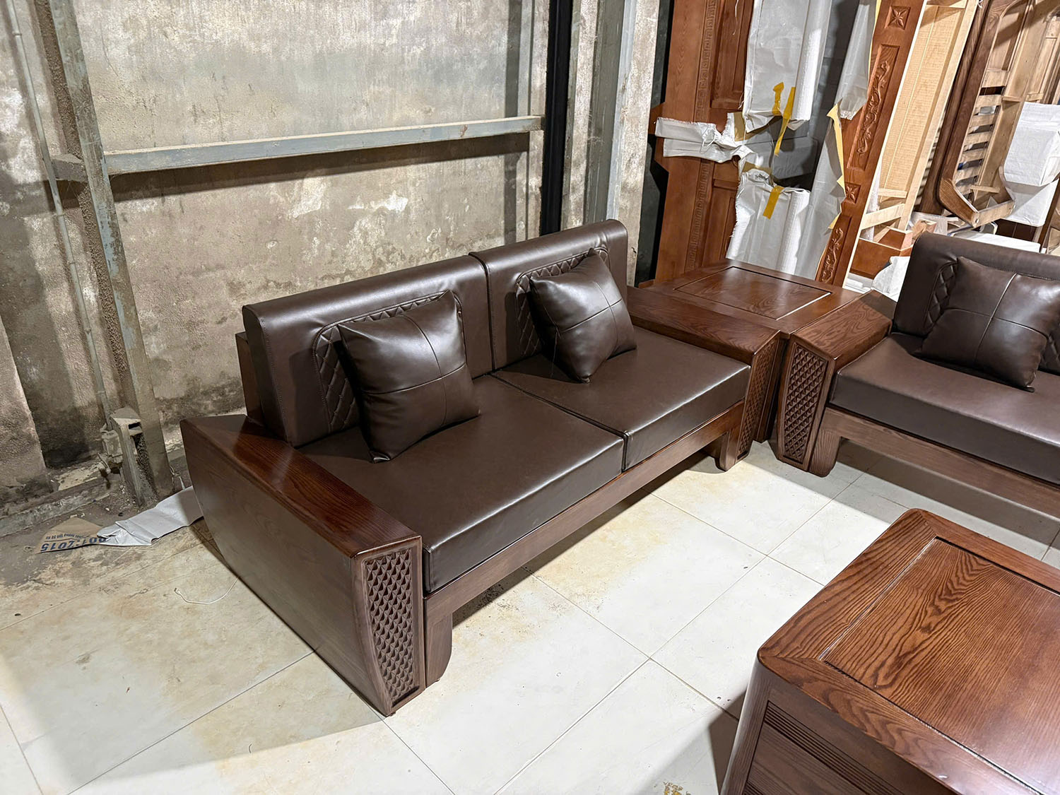Bàn Ghế Phòng Khách Sofa Gỗ lệ gà 2 văng Gỗ sồi nga