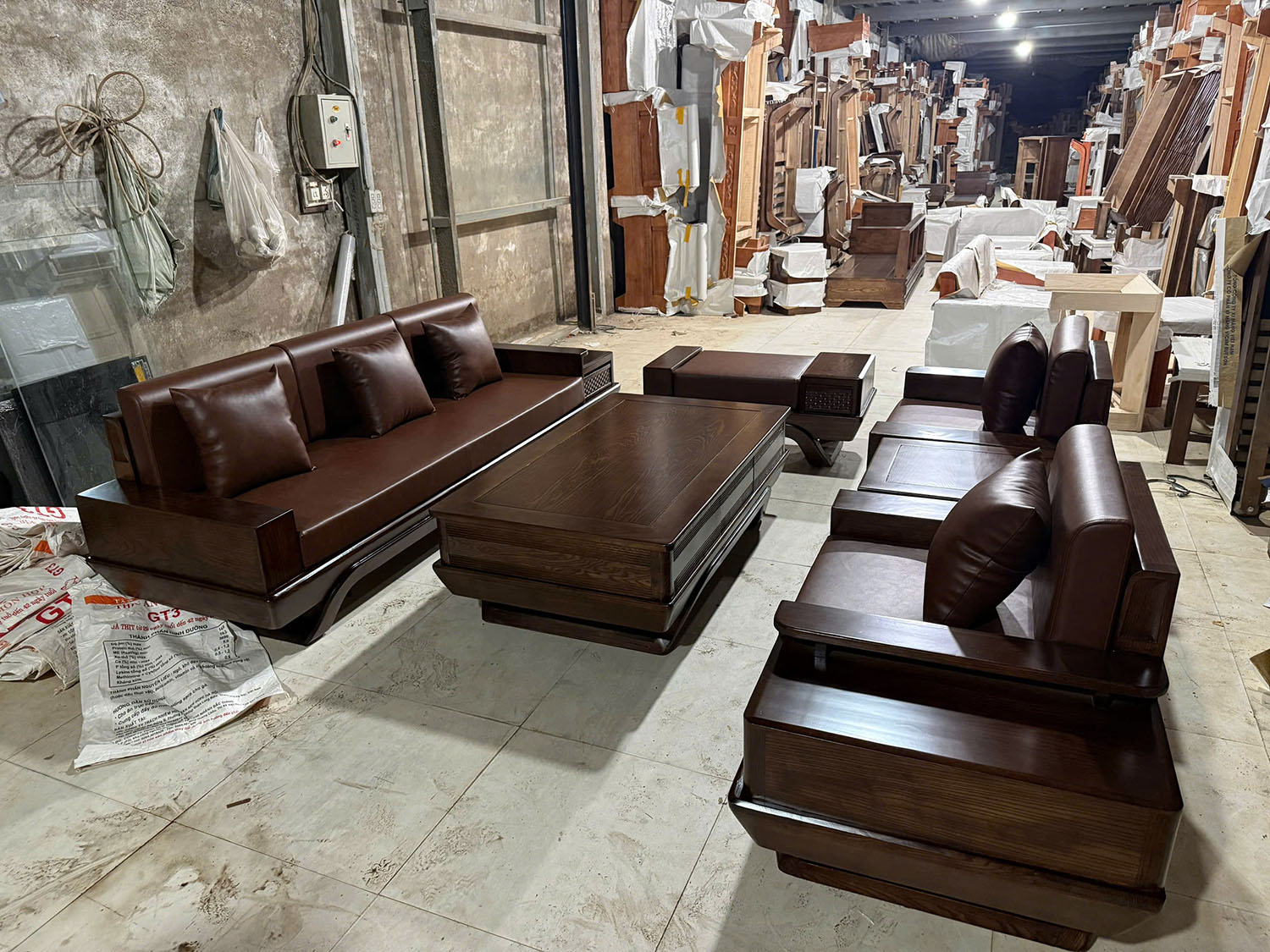 Bộ bàn ghế phòng khách 2 văng thuyền siêu cấp màu óc chó