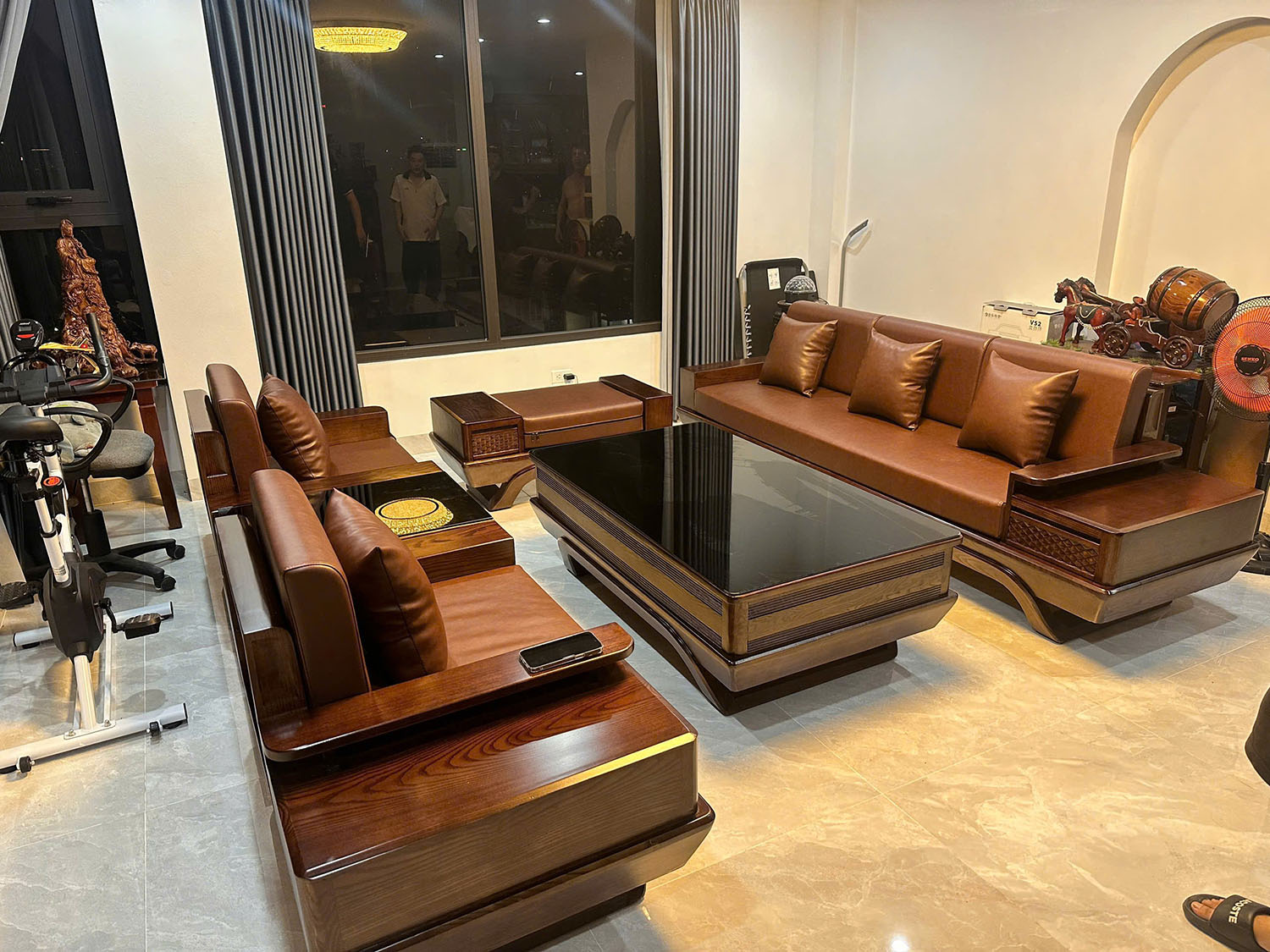 Bộ bàn ghế sofa gỗ phối đối gỗ lát