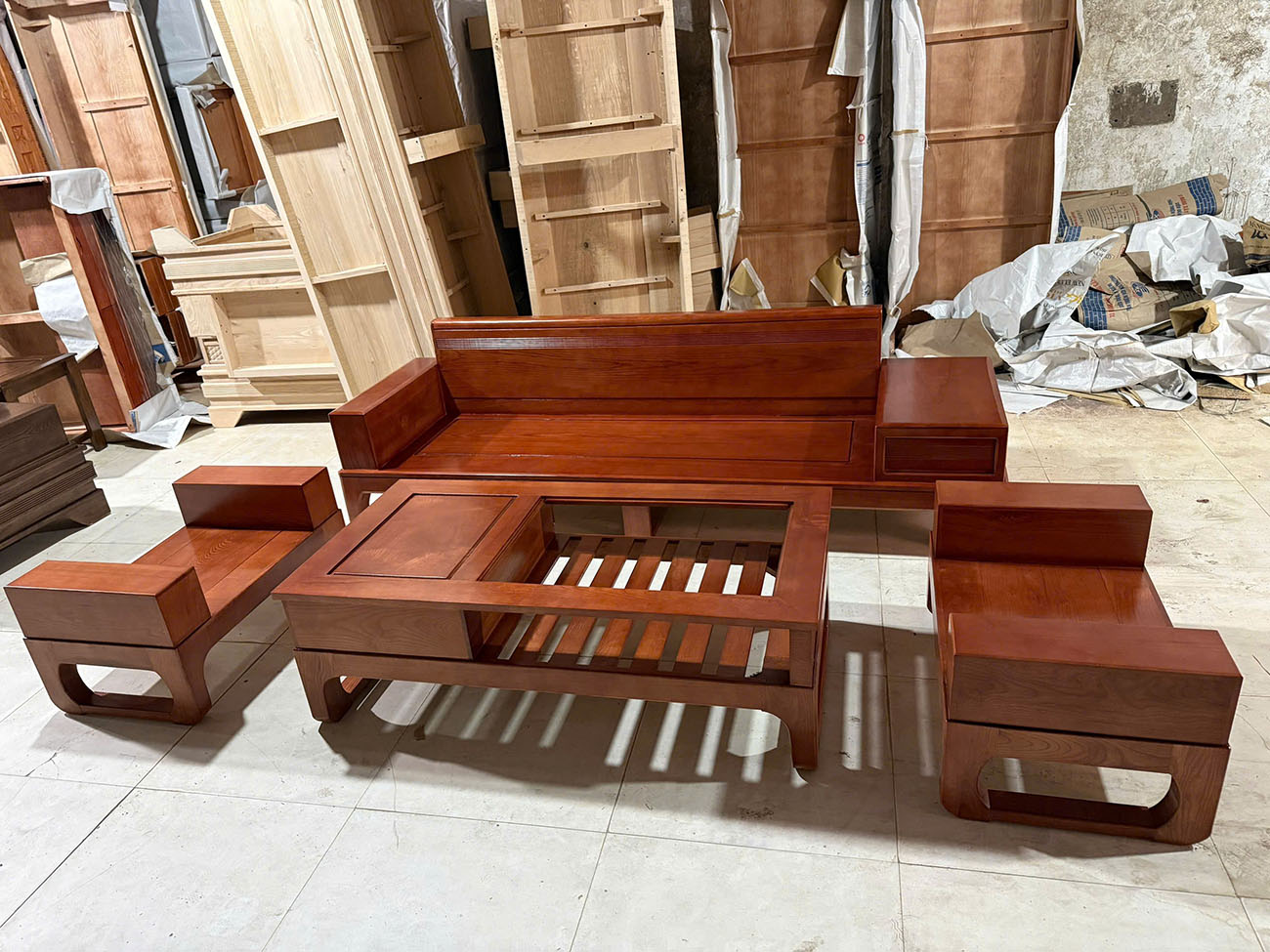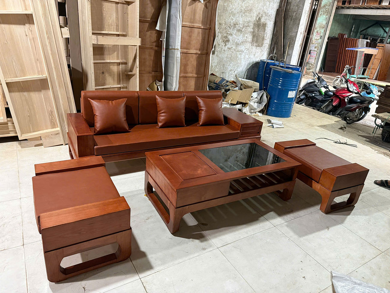 Bộ sa lông gỗ bao gồm các món nội thất cần thiết cho phòng khách: